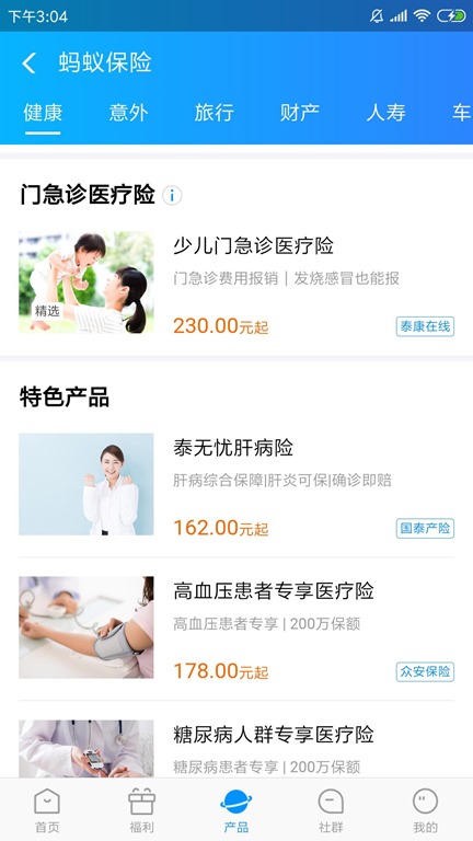 支付宝 里面 打开 蚂蚁保险 健康 有 成人及儿童长期重疾险 健康福-少儿重疾险